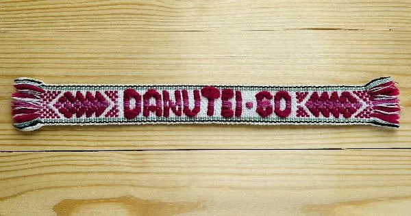 Simbolinė jubiliejinė tautinė juostelė su išaustu užrašu "DANUTEI-60".
