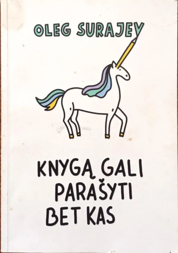 Vieno populiariausių komikų Lietuvoje Olego Šurajevo knyga „Knygą gali parašyti bet kas“ – tai pirmoji lietuviška komedijos žanro knyga. Autorius joje pristato savo sukurtas istorijas, netikėtas, kartais šokiruojančias ir paradoksalias mintis ar fantazijas.