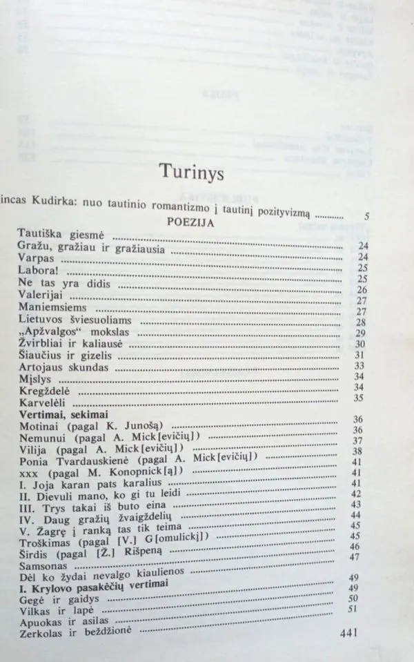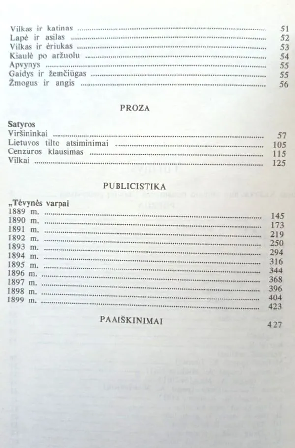 Rinkinyje spausdinama originalioji bei verstinė poezija, satyros („Viršininkai“, „Lietuvos tilto atsiminimai“, „Cenzūros klausimas“, „Vilkai“) ir publicistika („Tėvynės varpai“)